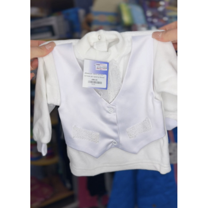 Набір складається з кофтинки, штанців та шапочки, які гармонійно поєднуються між собою та створюють акуратний і сучасний образ малюка. Дизайн "як з жилеткою" додає елегантності без зайвого декору та вишивки.